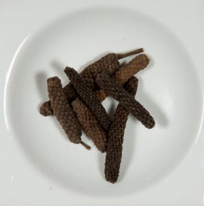 Ancêtre botanique du Poivre, le Piper longum était apprécié dès l’antiquité. Sa forme particulière évoque les chatons du bouleau.