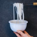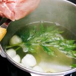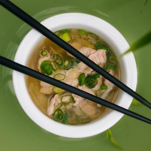 Porter à ébullition le bouillon. Corriger l’assaisonnement si nécessaire, en ajoutant du sel ou une petite cuillère à café de sauce de poisson (“Nuoc-mâm”) dans chaque bol.